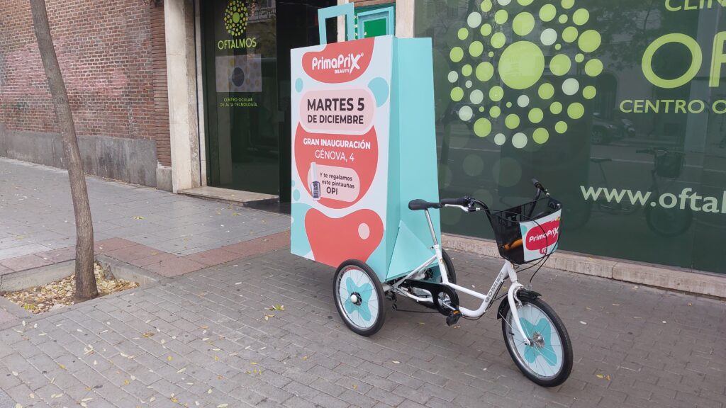 Bicicletas con Publicidad permite realizar campañas muy eficaces a un coste reducido. Su circulación lenta por zonas peatonales garantiza gran visibilidad, numerosos impactos y la posibilidad de entregar folletos directamente al público, convirtiéndose en un soporte cercano, económico y altamente efectivo.