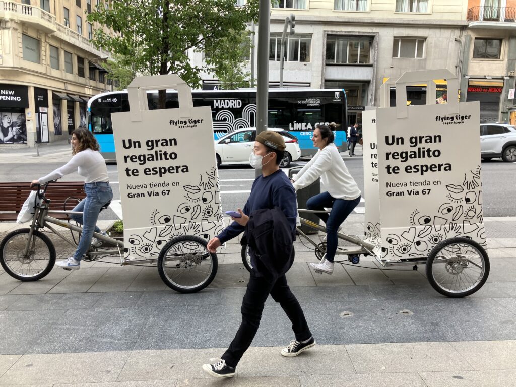 Desarrollamos soportes publicitarios para bicicleta y diseñamos campañas de eco-street marketing que conectan con la gente a pie de calle. Llevamos tu marca por la ciudad con estilo y sostenibilidad.